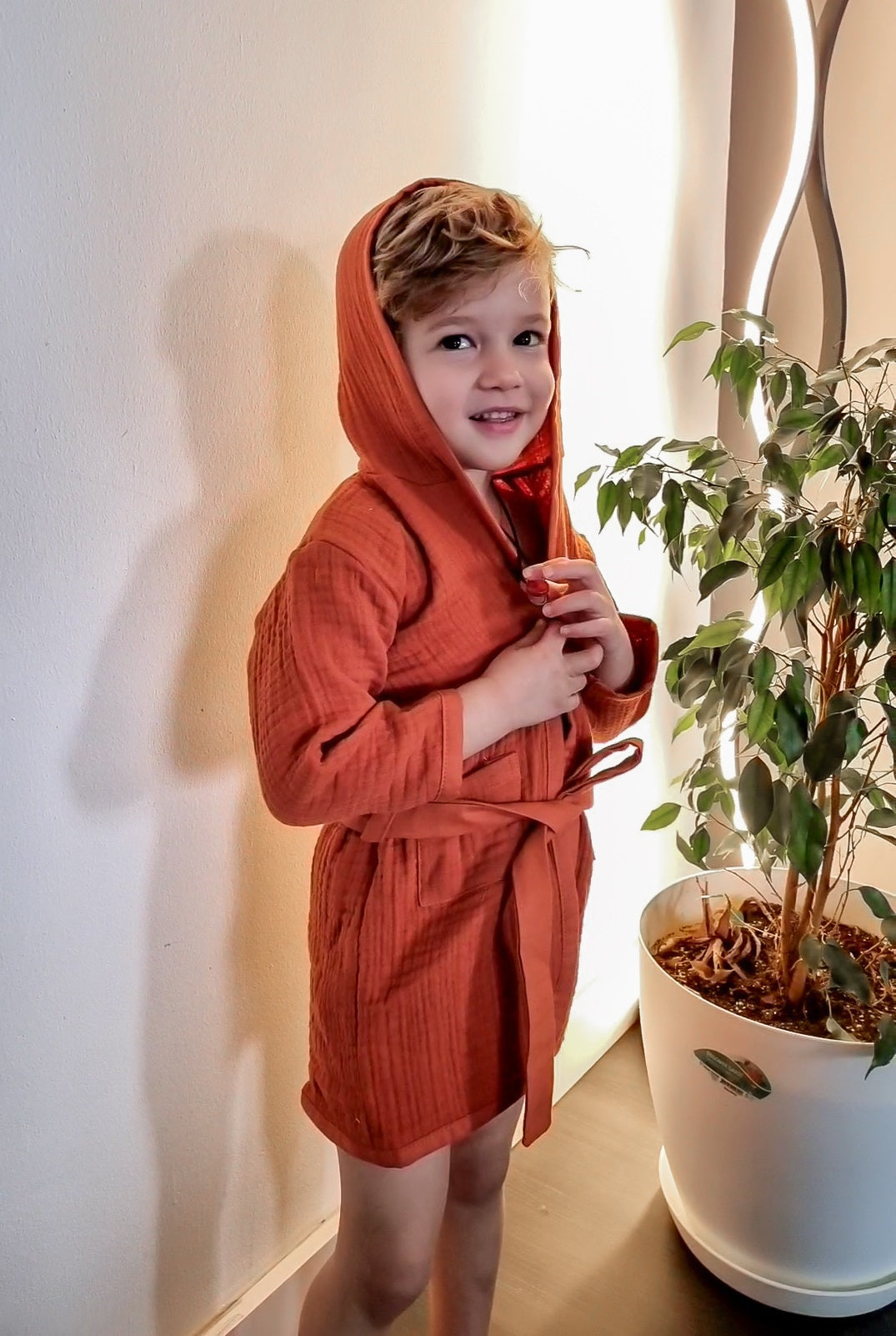 Shop our range of 100% organic muslin children's towel robes.