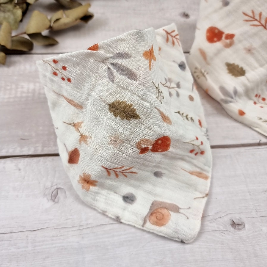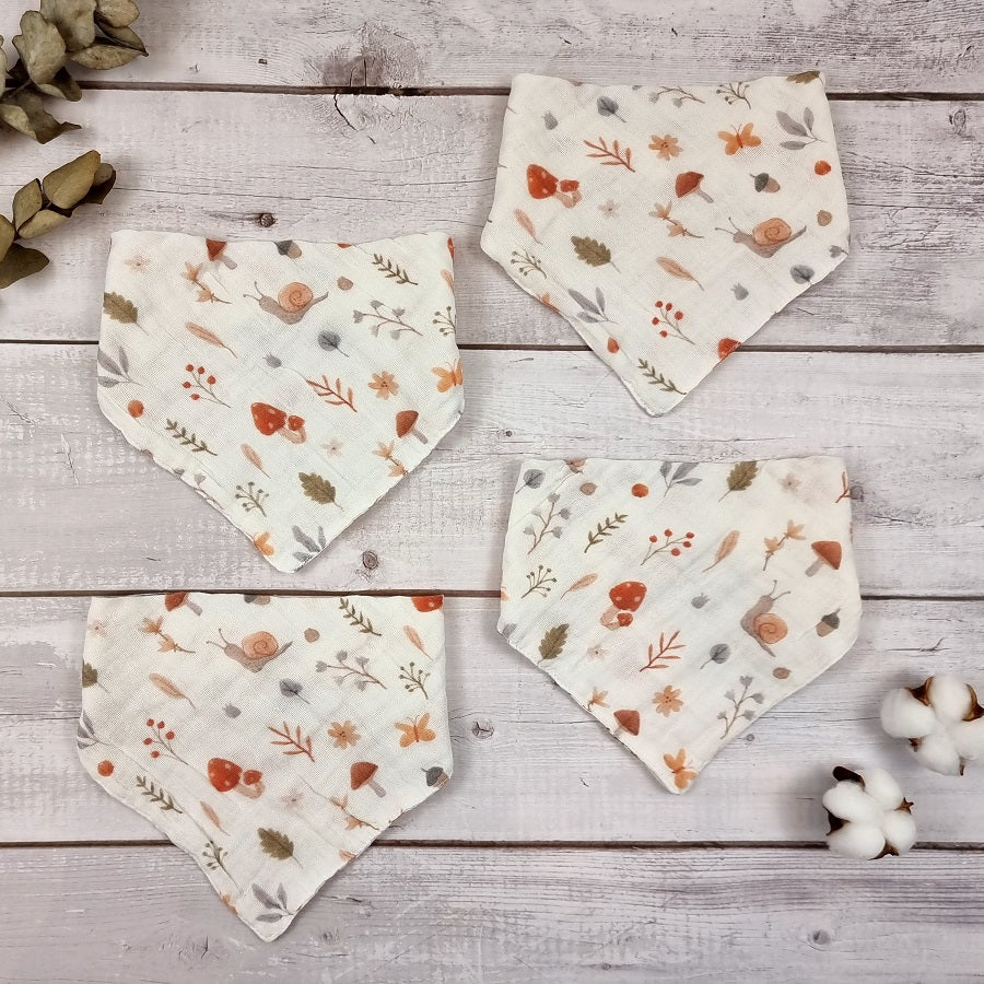 Our beautifulย woodland muslin dribble bibs come in a pack of your choice. -Please select the quantities from the menu. Youย will receive 2x or 4x printed bibs.